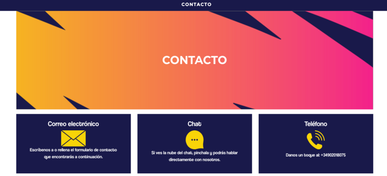 Por último, tiene un formulario de contacto que tiene un funcionamiento similar al correo electrónico. Indicas tu nombre de usuario, correo electrónico, teléfono, motivo del mensaje y exponer la duda o reclamo que tengas.