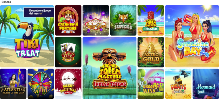 Las licencias que tiene le permiten ofrecer juegos de tipo “máquinas de azar”, término que es muy amplio, pues hace referencia a muchos juegos disponibles en los sitios online. En ese sentido, la página web de Gratogana está dividida en: Mejores Juegos, Video Tragaperras y Juegos de Rasca y Gana.