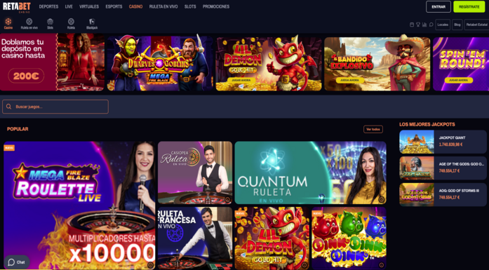 Retabet es un operador confiable. Pertenece a una empresa que lleva más de 15 años de experiencia en el mercado de las apuestas, trabajando con proveedores de juegos reconocidos y ofreciendo una atención al cliente inmejorable. Quizás sea algo más orientado al mundo de las apuestas deportivas, pero ofrece un muy buen producto de casino online, en especial para aquellos que están comenzando.